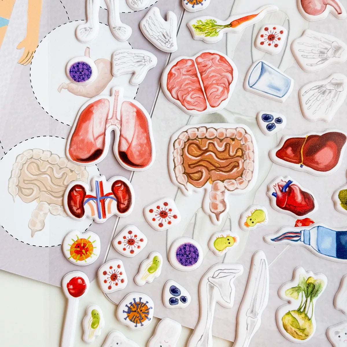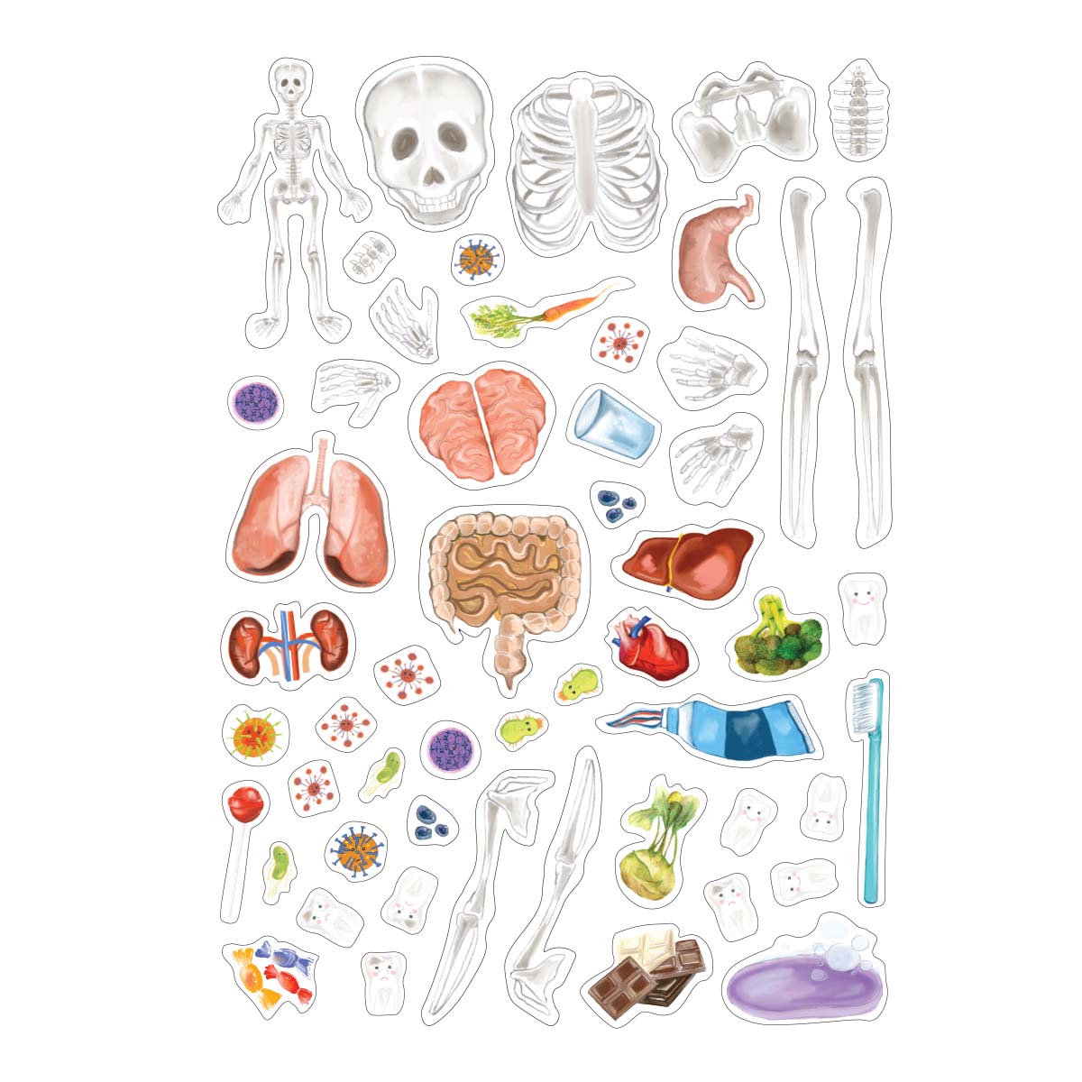 Lépjen be a szórakozás és az oktatás világába! Ezek az innovatív, 3D-s, újrafelhasználható matricák kiváló lehetőséget kínálnak a gyermekek oktatására és képzelőerejük fejlesztésére. A matricák segítségével a gyerekek felfedezhetik az emberi test lenyűgöző világát.