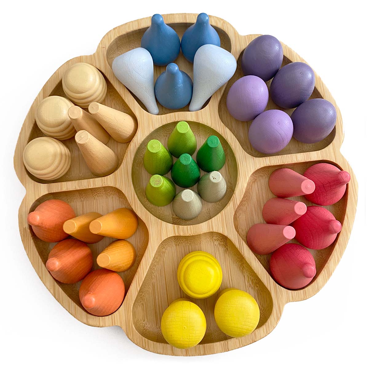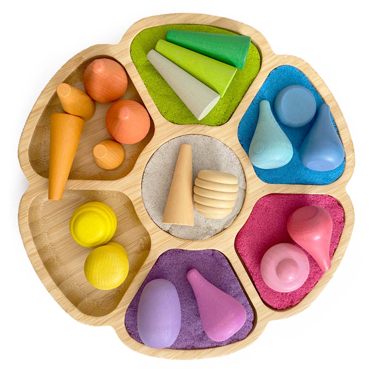 A bambusz tálca egy környezetbarát és biztonságos játékeszköz, amely támogatja a gyermekek érzékszervi észlelését, kreativitását, logikus gondolkodását és finommotorikus készségeit.