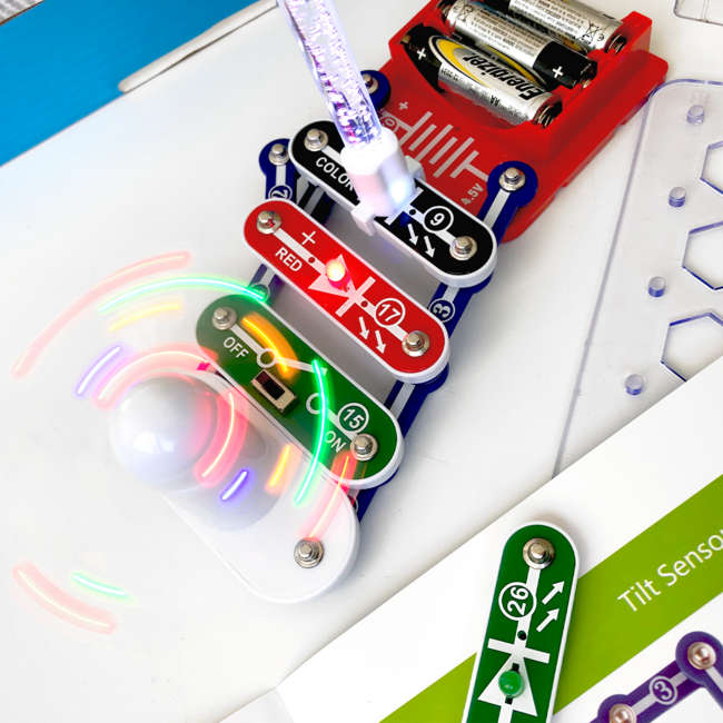 Ez az elektronikai építőkészlet 33 különböző elemet tartalmaz, amelyekkel a gyerekek biztonságosan és szórakoztató módon kísérletezhetnek az elektromos energia világában. Az egyszerű útmutató alapján könnyedén létrehozhatók különböző kapcsolási körök, mindössze 3 db AA elem szükséges hozzá.