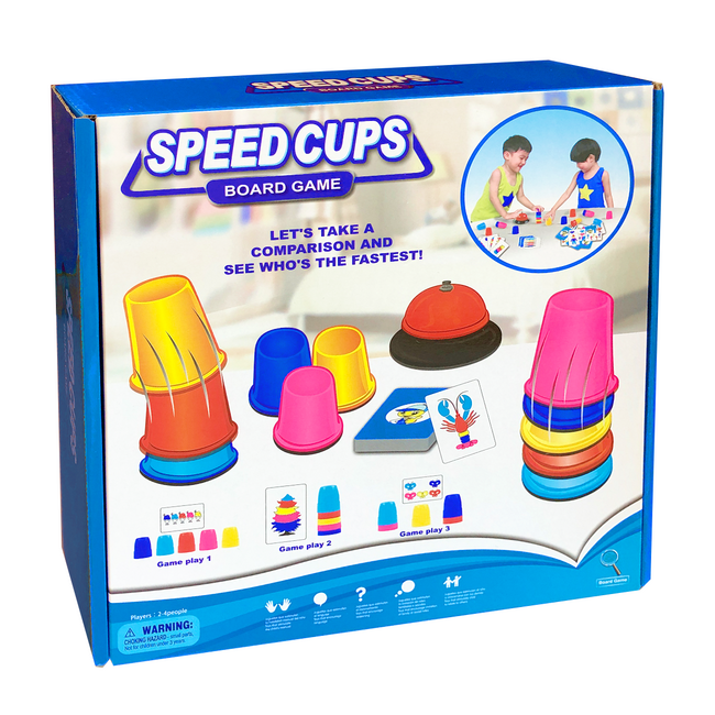 A Gyors poharak egy pörgős, szórakoztató társasjáték, amelyben az nyer, aki elsőként tudja lemásolni a felcsapott kártyán látható színmintát a poharak segítségével. A játék során a megfigyelés és gyorsaság dönt – amikor megszólal a csengő, már minden eldőlt!