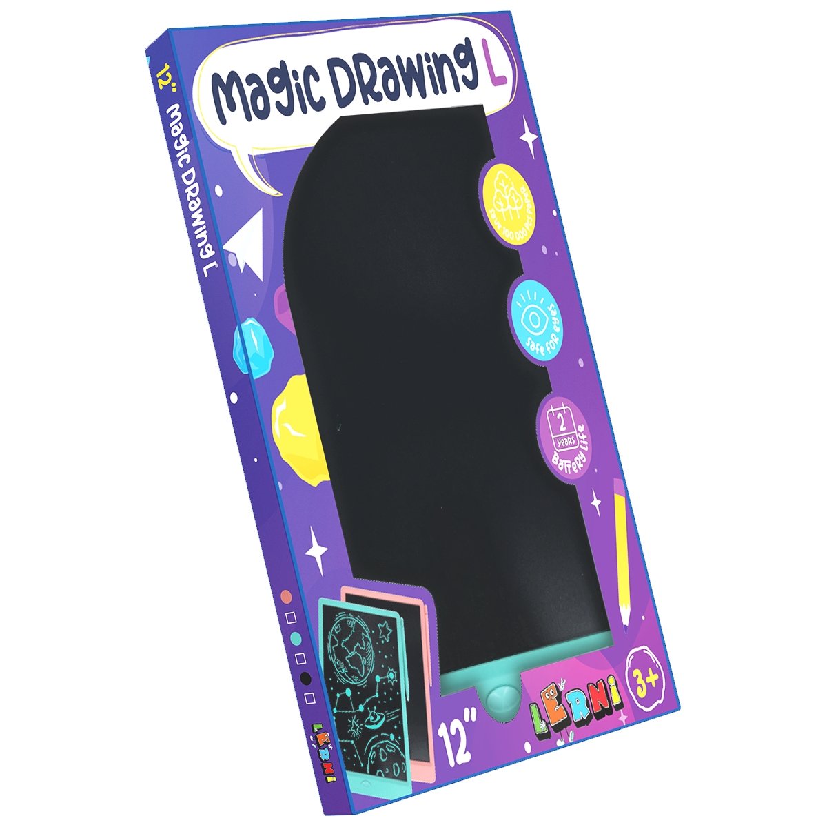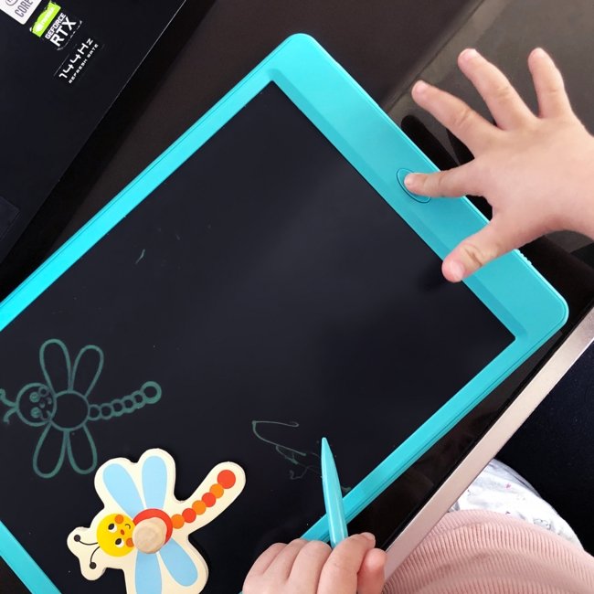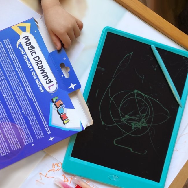 A legnagyobb rajztábla kínálatunkban! A Varázsrajzolás egy könnyű, tartós, környezetbarát LCD tábla, amely bőven biztosít helyet (194 x 288 mm) a gyerekek és felnőttek kreatív alkotásaihoz – legyen szó rajzolásról, betűk és számok gyakorlásáról vagy jegyzetelésről. Egyetlen gombnyomással törölhető, tollát biztonságosan tárolhatjuk benne, és akár 2 évig is működik egyetlen gombelemmel.