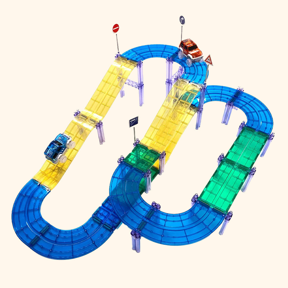 Ez a mágneses építőkészlet speciális elemeket tartalmaz, amelyekből a gyerekek különféle játékpályákat építhetnek – az egyszerű kanyaroktól a bonyolult körpályákig. A készletben található játékautók tökéletesen illeszkednek a pályára, így a gyerekek nemcsak az építkezés, hanem az izgalmas versenyek élményét is átélhetik.