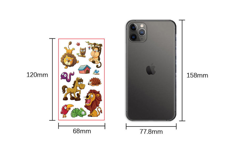 - 10 különálló tetoválólap,több mint 100 vidám, színes tetoválással, amelyekről könnyen kivághatóak az egyes minták