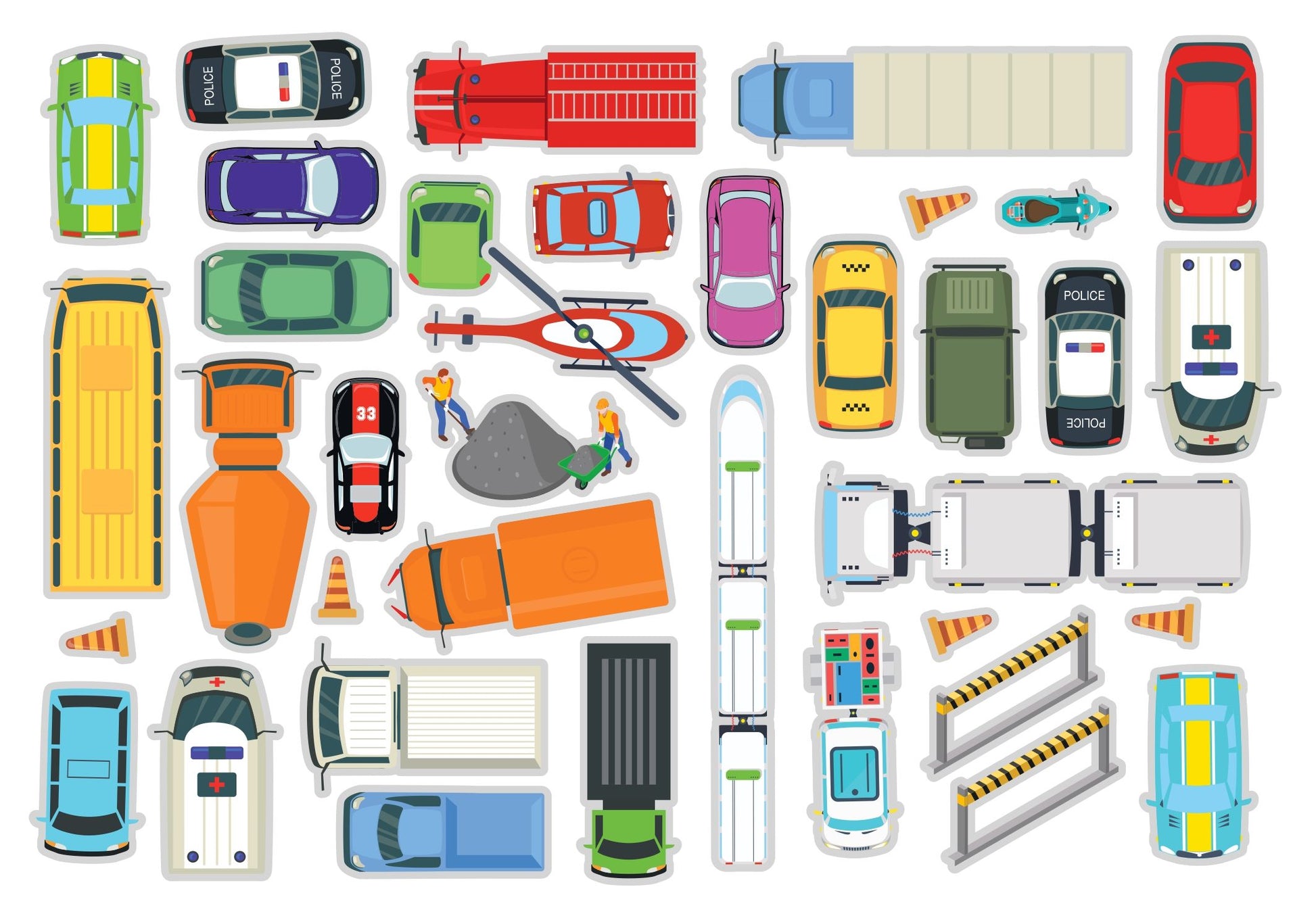 Újrafelhasználható matricák: a járművek világa a kislányokat és a fiúkat is érdekli. A matricák fejlesztik a kreativitást és a képzelőerőt, segítik a motoros készségek fejlődését. Az újrafelhasználható matricás könyv szórakoztató tevékenységet nyújtó oktatóeszközként is használható. Kifejezetten alkalmas történetek kitalálására, és egy képzeletbeli világ megteremtésére.